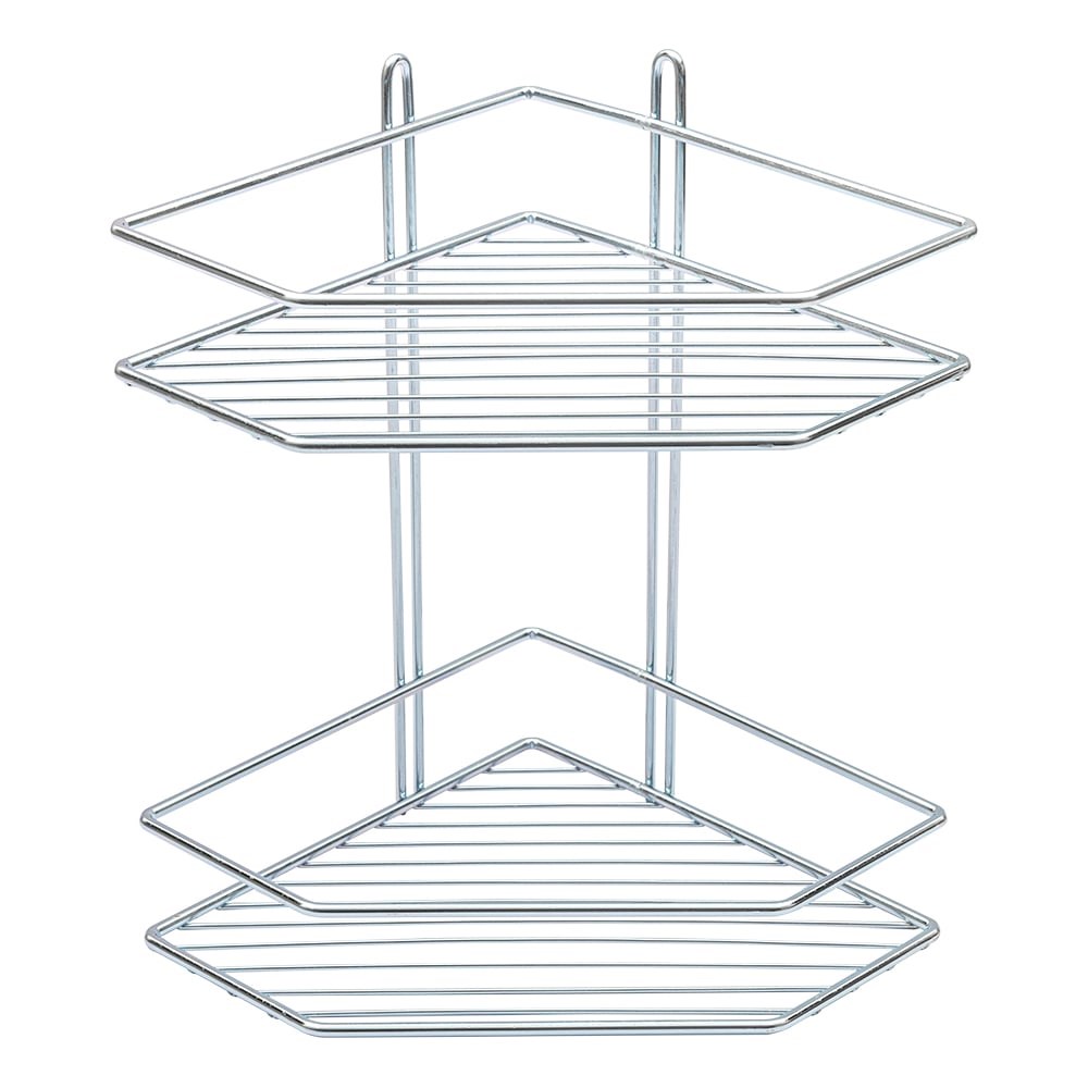 Полка 2-х ярусная, размеры 27,5х 20х 29 см Материал: сталь с гальваническим покрытием "блестящий цинк". Овальная форма донышка. Сделано в России. Полка для ванной 2-х ярусная угловая, размеры 27,5 х 20х 29 см гальваника хром-цинк.Упаковано в индивидуальный полиэтиленовый рукав и комплектуется дюбелями с саморезами. Повышенная корозионностойкость - не ржавеет. Прочная, сделана из проволоки ГОСТ3282-74 диаметром 5 мм. Сделано в России.