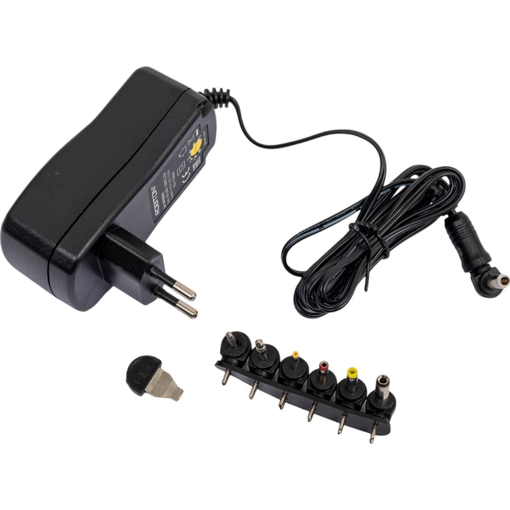 Дополнительные технические характеристики адаптера/блока питания Robiton EN1500S/II 14528: Предназначен для питания от источника переменного тока 100-240В приборов с регулируемым напряжением 3,0/4,5/5/6/7,5/9/12 Вольт и максимальным входным током 1500 мА. Набор из 7 наиболее распространенных входных насадок и выбор полярности позволяют использовать его для питания большого количества современных электроприборов, цифровых устройств, устройств автоматики и др. Автоматическая защита от короткого замыкания и защита от перегрузок. Размеры штекеров - 3,5х1,35 мм, 2,35х0,75 мм, 4,0х1,7 мм, 5,5х2,5 мм, 5,0х2,1 мм, 3,5/15мм, 2,5/12мм.