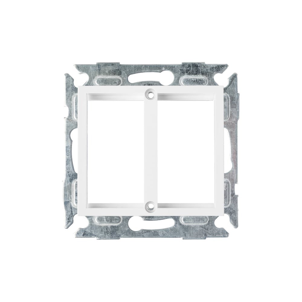 Адаптерная панель NIKOMAX Valena на 2 вставки Mosaic, 22,5x45мм, белая NMC-PV2MH-WW предназначена для установки в них вставок под модули типа Keystone для организации информационных портов на рабочем месте. Панель позволяет установить две стандартные вставки Mosaic 45х22,5 мм. Таким образом, можно смонтировать любые решения на основе модулей keystone либо совместимые с форматом Mosaic изначально. Монтажная рамка выполнена из стали и совместима со стандартным подрозетником. Расстояние между посадочными отверстиями под винты - 60 мм. Лицевую рамку необходимо использовать оригинальную. Габариты, мм - 72х72х12.