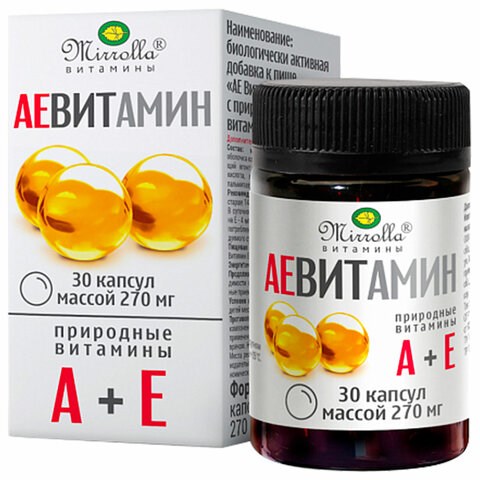 АЕ ВИТамин 270 мг, источник витаминов А и Е, капсулы 30 шт., БАД, МИРРОЛЛА, ЦБ-00006597