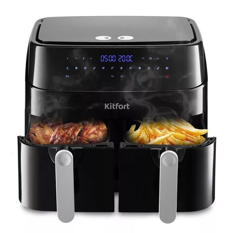 Аэрогриль KITFORT КТ-2250, 1750 Вт, 2х4,5 л, 12 программ, таймер, сенсорное управление, черный