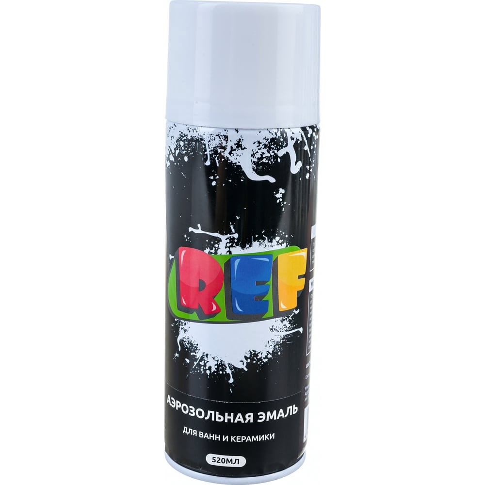 Аэрозольная эмаль для ванн и керамики REF цвет белый, объем 520 мл 9003 используется при ремонте керамических и эмалированных оснований. Состав предназначен для обработки умывальников, ванн, раковин, душевых поддонов, стиральных машин, холодильников и мебели. Продукт имеет аэрозольную форму выпуска, что позволяет легко и удобно наносить краску в места с трудным доступом. Вещество обладает хорошей укрывной способностью. Применение эмали обеспечивает окрашенной поверхности устойчивость к механическим воздействиям и атмосферным явлениям.