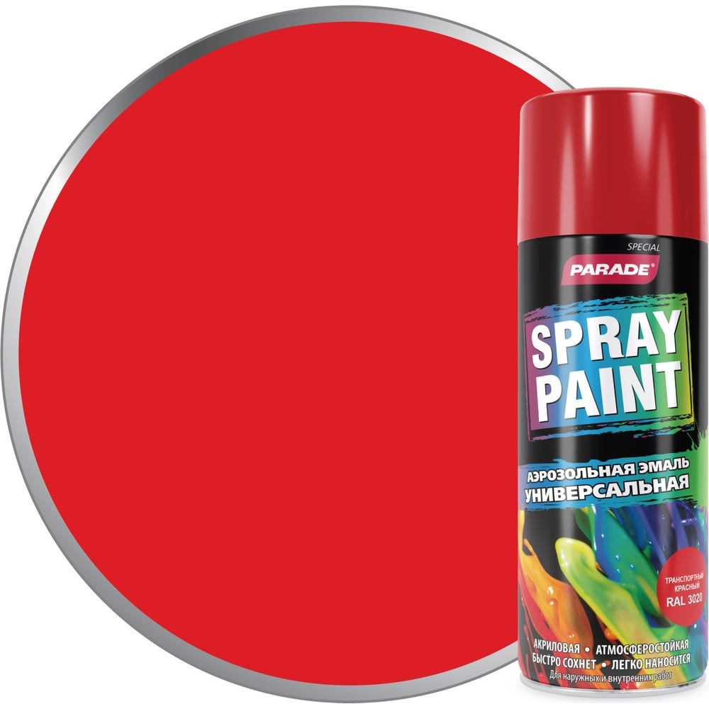 Аэрозольная эмаль PARADE SPRAY PAINT RAL 3020 Транспортный-красный Лк-00008445 образует прочное покрытие на деревянных, металлических или кирпичных поверхностях. Продукт имеет высокую укрывистость. Отличается устойчивостью к негативным атмосферным воздействиям. Продукт удобно наносится с минимальными потерями, легко проникает в труднодоступные места.