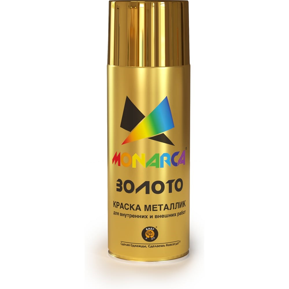 Аэрозольная краска MONARCA металлик Яркое Золото 30187 придает поверхности металлический блеск. Быстросохнущая формула обеспечивает гладкое однородное покрытие. Полное покрытие и ровный цвет достигаются в 2 слоя. Равномерно распыляется и не растекается по поверхности. Легко наносится в труднодоступных местах, быстросохнущая, стойкая к УФ излучению и воздействиям внешней среды. Для внутренних и внешних работ. Для использования в домашнем хозяйстве, для хобби, рукоделия и поделок. Окрашивает поверхности из дерева, металла, пластика, стекла, камня, бетона, бумаги, картона.
