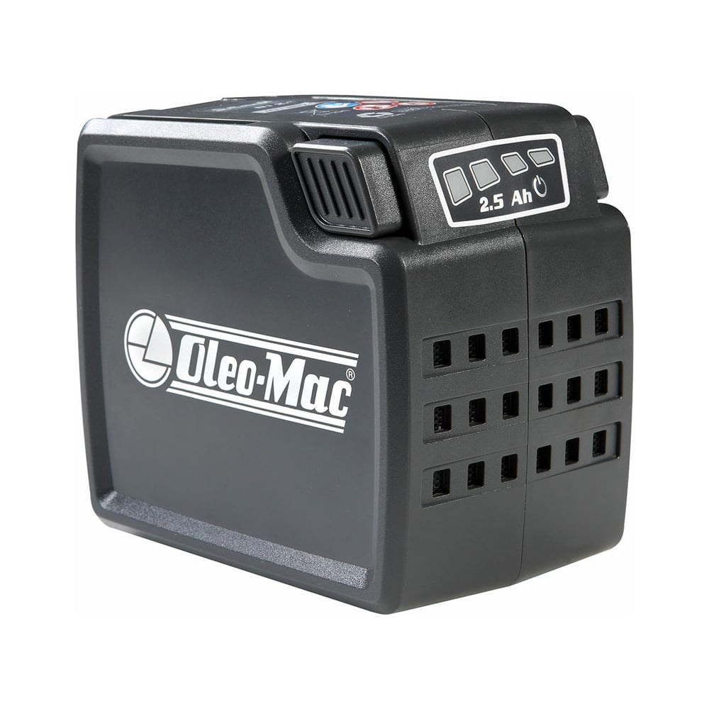 Перезаряжаемая батарея Oleo-Mac Bi (2,5 Ач). Совместима с аккумуляторной техникой Oleo-Mac GSi 30, BCi 30, BVi 60, HCi 45. Время зарядки 110 мин. Напряжение 40 V. Технология - литий-ионные элементы. Индикатор зарядки - 4-уровневая LED-шкала.