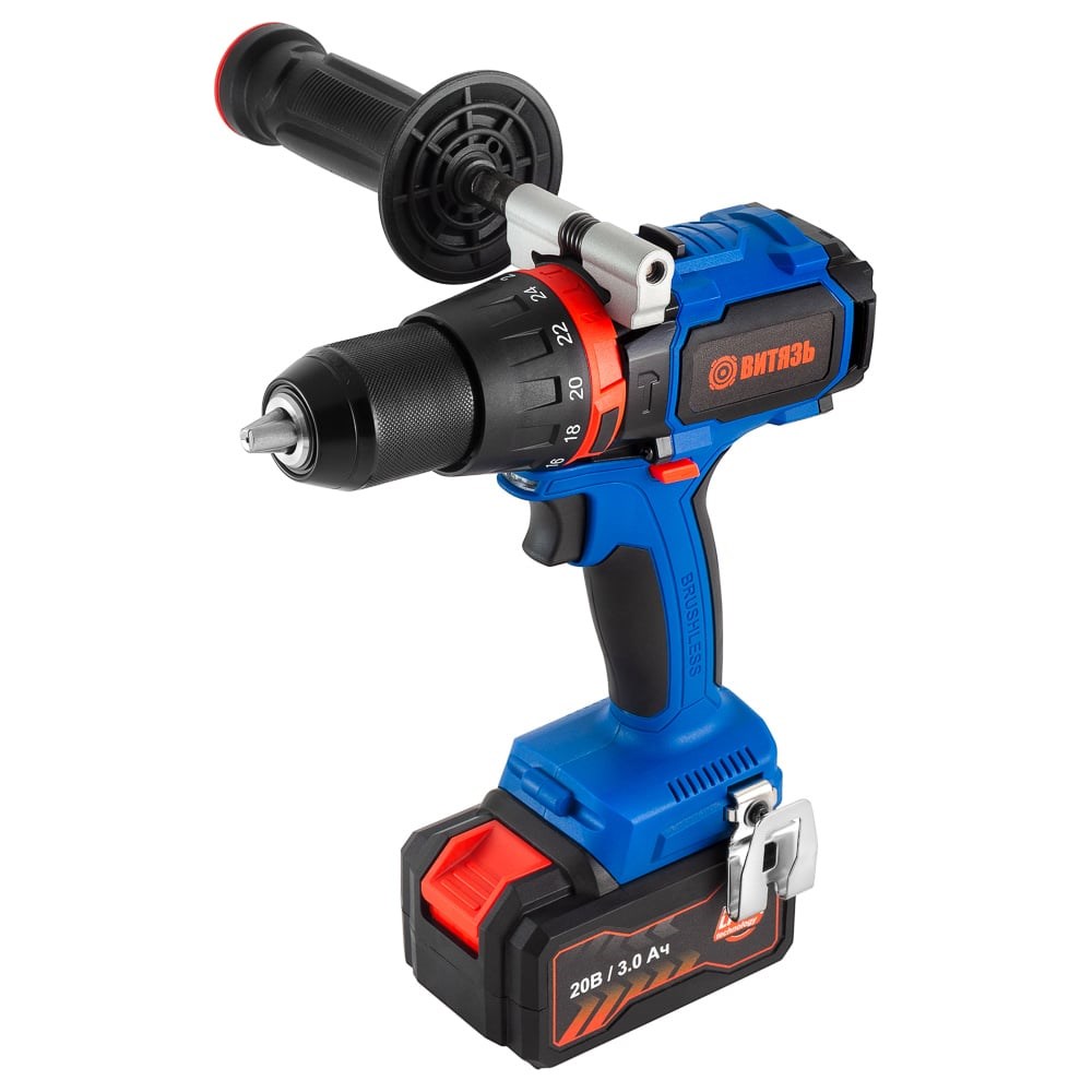 Технические характеристики: Тип двигателя - бесщеточный 24В Мах значение крутящего момента - 100 Нм Тип аккумулятора - Li-ion 20 В / 3.0 Ач Фиксация шпинделя Патрон металл, макс диаметр оснастки 13 мм Быстрозажимной патрон с трещоткой для защиты от ослабления и разворачивания патрона Кол-во скоростей - 2 Число оборотов (об/мин) - 0-500/ 0-8000 Количество ударов (уд./мин) - 0-2000/ 0- 12000 Кол-во регулировок крутящего момента - 24+3 Удар Дополнительная рукоятка Кол-во аккумуляторов в комплекте - 2 Зарядка - 1 час Подсветка рабочей зоны Вес кг - 2.1 Ударная, бесщеточная аккумуляторная дрель-шуруповерт Витязь ДА-424-2 серии Professional широко используется при строительных и монтажных работах. Подходит для сверления, сверления с ударом и закручивания крепежа. Для удобства оснащена дополнительной рукояткой. Благодаря бесщеточному двигателю достигается отличная производительность. Редуктор с износостойкими металлическими шестернями обеспечивает внушительный рабочий ресурс. Быстрозажимной патрон сокращает время на замену оснастки. Преимущества шуруповерта Витязь ДА-424-2: Режим удара; Дополнительная рукоятка; Быстрая зарядка за 1 час; Индикатор заряда батареи; Клипса для крепления на поясе; Блокировка шпинделя; Патрон металлический быстрозажимной, Бесщёточный двигатель выдерживает высокие нагрузки; Подсветка для оптимального освещения рабочей зоны; Регулируемая скорость вращения для оптимальной работы с материалами; Аккумуляторный шуруповерт Витязь ДА -424-2 поставляется в пластиковом кейсе.