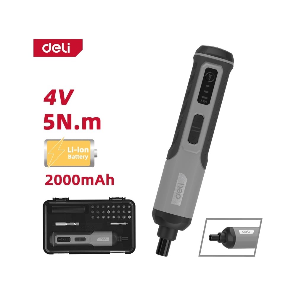Представляем вам аккумуляторную отвертку Deli DC161, идеальный инструмент для выполнения различных задач в строительстве и ремонте. Эта отвертка сочетает в себе мощность и компактность, что делает её незаменимым помощником как для профессионалов, так и для любителей домашних ремонтов. Встроенный аккумулятор с напряжением 4 В и емкостью 2 Ач обеспечивает надежную и стабильную работу. Максимальный крутящий момент в 5 Нм позволяет легко справляться с задачами различной сложности. Благодаря скорости вращения до 300 об/мин вы сможете эффективно выполнять работу без лишних усилий. Три ступени регулировки крутящего момента позволяют подобрать правильный режим для различных задач. Deli DC161 оснащена удобным разъемом Type-C, который обеспечивает быстрое и простое зарядное подключение. Это современное решение позволяет вам не беспокоиться о совместимости с зарядными устройствами. В комплекте с отверткой поставляется удлинитель и набор бит из 24 штук, что расширяет возможности инструмента и делает его универсальным. Поставляется в удобном пластиковом кейсе. С этим инструментом вы всегда будете готовы к любым вызовам, будь то мелкий ремонт или более серьезные строительные проекты. Оптимальное соотношение цены и качества делает этот продукт отличным выбором для активного использования в домашних условиях или профессиональной деятельности.