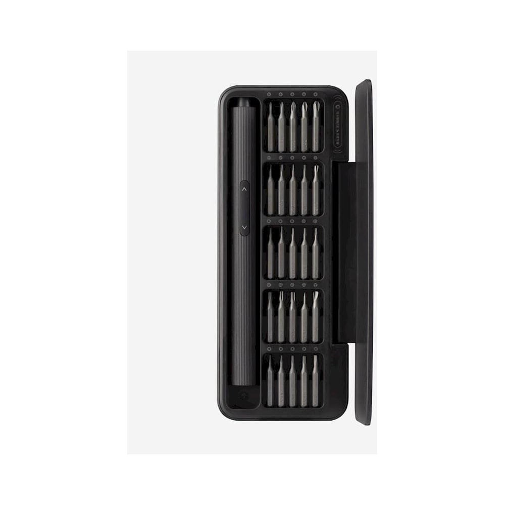 Аккумуляторная отвертка HOTO Electric Screwdriver Set с набором бит, 5В QWLSD010 представляет собой набор из 24 прецизионных бит для точных работ С4 и отвертку из алюминиевого сплава. Он является удобнейшим решением для ремонта мелкой техники, такой как очки, фотоаппараты, клавиатура, геймпады и т. д. Комплект поставляется в удобном и компактном кейсе с магнитной крышкой. Отвертка выполнена из алюминиевого сплава и имеет длину 182 мм. Нескользящая ручка – анодированная с пескоструйной обработкой. Биты обработаны на ЧПУ с высокой точностью и изготовлены из легированной стали S2 с твердостью до 60HRC. Все насадки надежно закреплены в индивидуальных магнитных слотах кейса, тем самым упрощая использование. Встроенный аккумулятор рассчитан на 500 скручиваний от одной зарядки с помощью современного порта USB Type C. Биты выполнены из легированной стали, а также прошли закалку высокой температурой. Емкость аккумулятора 0.35 Ач (или 350 мАч).