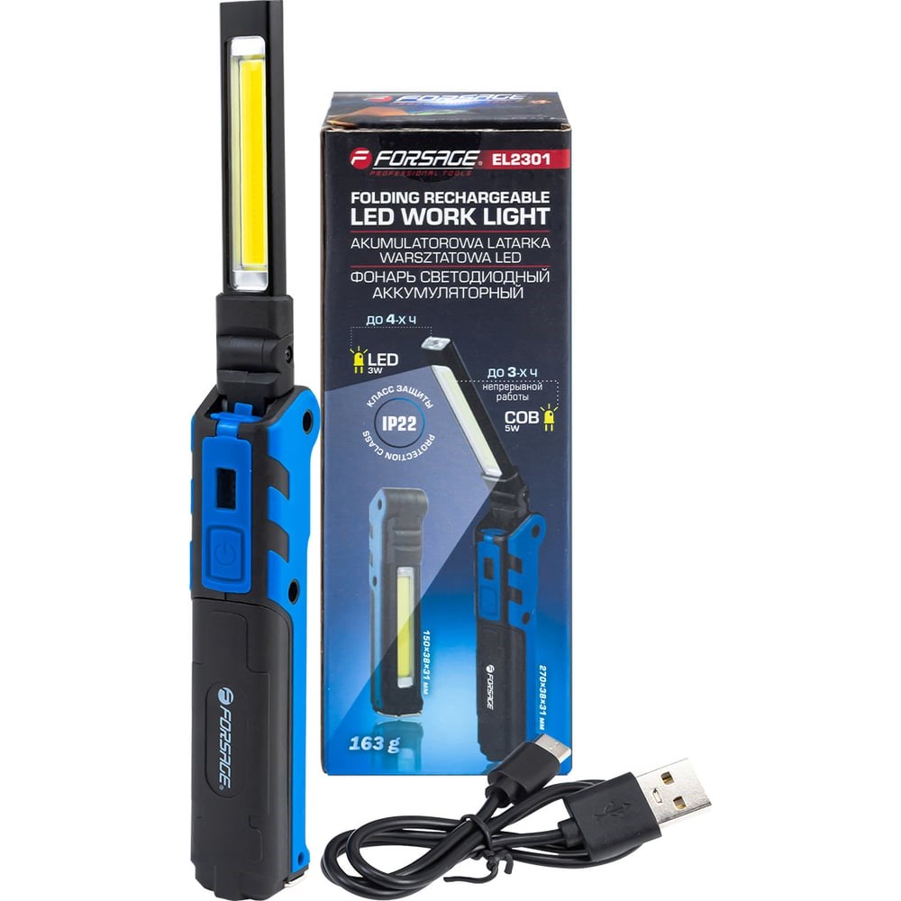 Многофункциональный светодиодный фонарь Forsage с магнитом и крючком — это универсальное решение для освещения в различных ситуациях. Он идеально подходит для использования в гараже, на даче, во время рыбалки, охоты и в туризме.Ключевые характеристики:Световой поток: от 120 до 360 LmАккумулятор: 2000 mAhЗарядка: 3.7V (зарядка от USB)Время зарядки: 4 часаПоворот корпуса: на 270°Три режима подсветки: Позволяют выбрать оптимальный уровень яркости в зависимости от ситуации.Складная конструкция: Фонарь имеет шарнир, который плавно вращается на 270 градусов и надежно фиксируется в каждом положении, что обеспечивает удобство использования.Крюк для подвешивания: Позволяет легко повесить фонарь на дерево или другую поверхность, освобождая руки для работы.Ударопрочный и влагозащищенный корпус: Обеспечивает надежность и долговечность в любых условиях эксплуатации.Прорезиненная ручка: Исключает скольжение фонаря в руке, что повышает комфорт при использовании.Защита гнезда зарядки: Обеспечивает дополнительную надежность и удобство в использовании.Многофункциональный светодиодный фонарь Forsage — это профессиональный инструмент, который станет отличным подарком для мужчин и незаменимым помощником в повседневной жизни. Его качество и функциональность делают его идеальным выбором для различных задач.