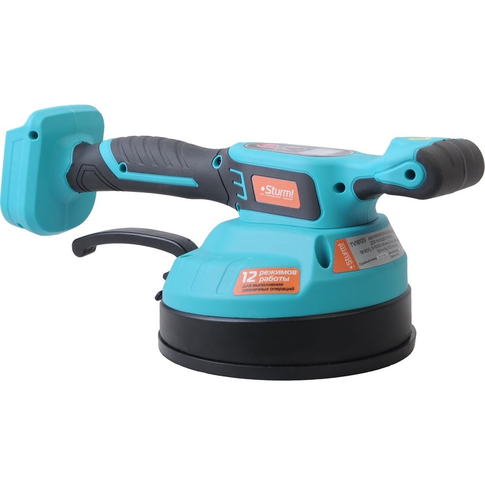Аккумуляторная виброприсоска для укладки плитки Sturm! TV18120 — профессиональный инструмент, разработанный для переноса, подъема, выравнивания при укладке напольной и настенной плитки больших размеров и веса, керамогранита, гранитных и мраморных плит. Грузоподъемность— 120кг. Диаметр подошвы— 160мм. Небольшой размер и легкий вес делают данный инструмент очень удобным в использовании. Постоянная и равномерно распределенная вибрация не повреждает плитку, даже если в ней были выполнены отверстия или разрезы больших размеров. 12 режимов регулировки частоты вибрации для выполнения различных операций. Встроенный пузырьковый уровень для легкого измерения угла отклонения поверхностей. Данная модель является частью системы 1BatterySystem и совместима со всей линейкой аккумуляторного инструмента. Для вашей выгоды модель поставляется без аккумулятора и зарядного устройства.