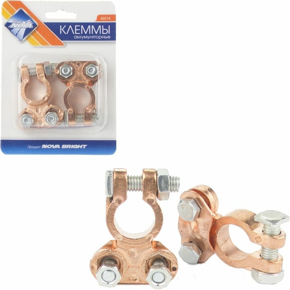 Аккумуляторные клеммы Nova Bright в блистере - 2 шт. 46574 предназначены для обеспечения надежного и удобного подключения силовых проводов электропитания к аккумуляторной батарее. В комплекте - 2 шт.