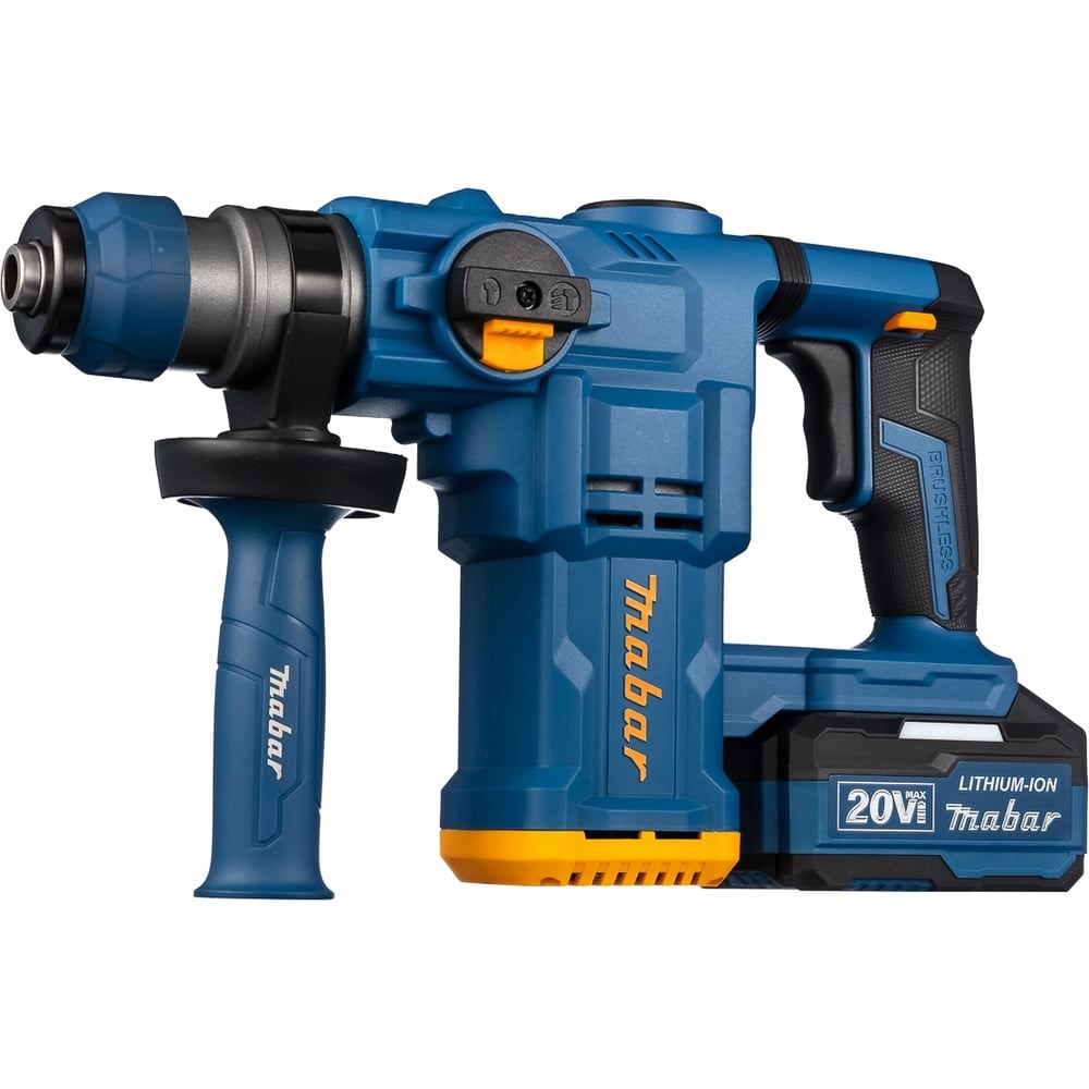 Этот инструмент оснащён мощным литий-ионным аккумулятором на 20 В и ёмкостью 4000 mАч, который обеспечивает длительную работу без подзарядки. Вы сможете выполнять задачи непрерывно, не тратя время на ожидание зарядки. Благодаря мощному двигателю с электронной регулировкой скорости и ударной функцией, перфоратор Mabar позволяет сверлить отверстия даже в самых твёрдых материалах. Плавный пуск и защита от перегрузок делают работу с инструментом комфортной и безопасной. Смена буров происходит быстро и легко благодаря быстрозажимному патрону. А регулируемая боковая рукоятка и удобная антивибрационная рукоятка обеспечивают дополнительный комфорт во время работы. Перфоратор Mabar подходит для различных строительных задач — от сверления отверстий и установки крепежных элементов до демонтажа. Он станет незаменимым помощником на стройке. Комплектация включает в себя перфоратор, два аккумулятора, зарядное устройство, боковую рукоятку и сумку для хранения. Не сомневайтесь в выборе — выберите Mabar и уверенно двигайтесь к своим строительным успехам!