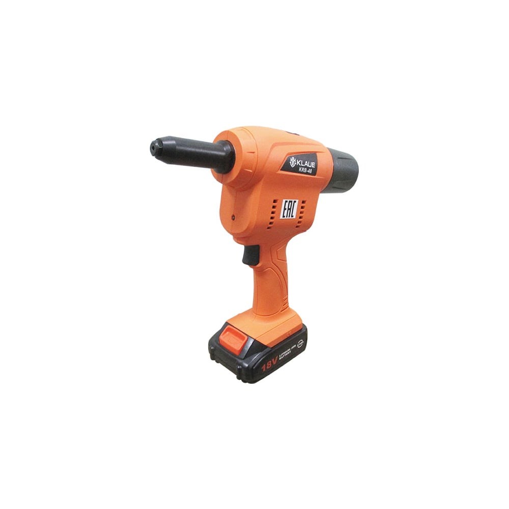 Заклепочник аккумуляторный для вытяжных заклёпок из алюминия, стали и нержавейки диаметром 2,4 – 3,0/3,2 - 4,0 - 4,8/5,0 мм.Данная модель вытяжного заклёпочника от производителя Klaue имеет все преимущества предыдущих поколений заклёпочников:Сбалансированный корпус обеспечивает равномерность нагрузки на рукиВстроенная защита от перегрузокПластиковый кейс обеспечивает надёжность хранения вытяжного заклёпочника и лёгкость транспортировкиПодсветка рабочей зоныРабочее усилие: 10 000 НИндикатор уровня заряда/разряда батареиВремя зарядки аккумулятора: 80 минВес без аккумулятора: 1,5 кгВес с аккумулятором: 1,8 кг