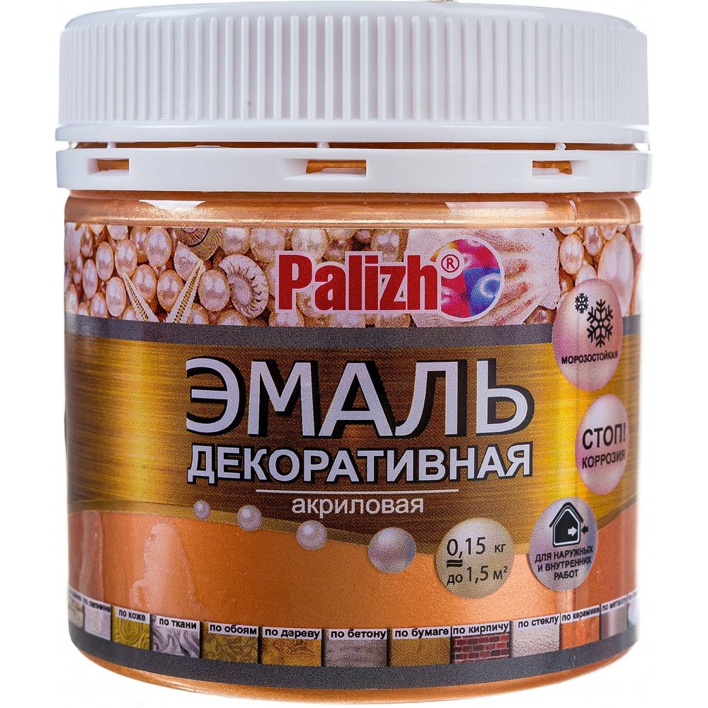 Акриловая декоративная эмаль Palizh №97 бронза 0,15 кг 11605919 предназначена для окрашивания и росписи различных поверхностей (дерево, бетон, обои, холст, гипсокартон), металлических и кованых изделий внутри и снаружи помещений, декорирования и реставрации предметов интерьера. Состав подходит для колерования акриловых лаков (на 1 кг лака 0.1-0.15 кг эмали). Продукт содержит антикоррозиные добавки и препятствует появлению ржавчины.
