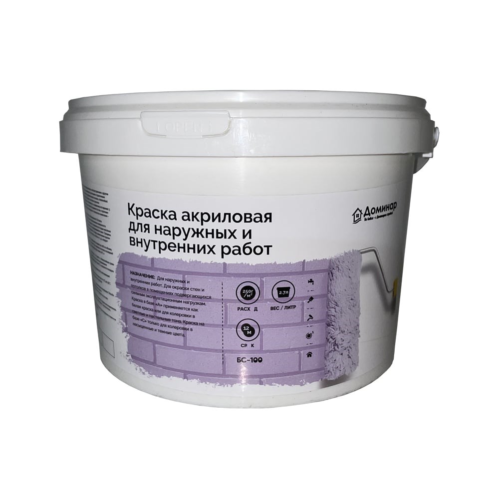 Акриловая краска для наружных и внутренних работ Доминар БС 100