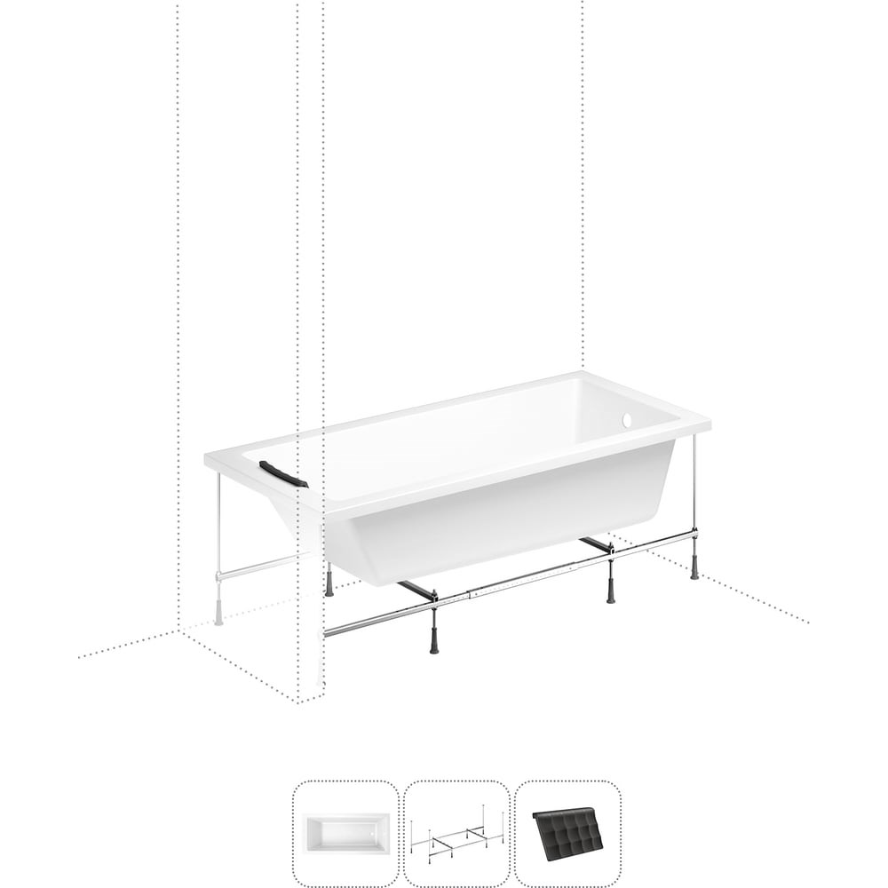 Прямоугольная акриловая ванна Catani производится с лево- или правосторонним разворотом в размерах 160 и 170 см по длине, имеет увеличенную ширину – 80 см. Тонкие линии лицевой и торцевой стенок визуально облегчают конструкцию, а широкий бортик вдоль стенки позволяет разместить предметы гигиены или же установить встраиваемый смеситель. Глубина изделия отлично подходит для купания детей, принятия ванны и душа взрослыми, а объема прямоугольной ванны достаточно для погружения в теплую воду и полноценного отдыха после напряженного дня или активной тренировки. Основа ванн из литьевого акрила — жесткий 4 мм лист полиметилметакрилата (ПММА), который помещают в вакуум-формовочное оборудование и под большим давлением заполняют матрицу будущей ванны. Для максимальной прочности конструкции по всему основанию купели закладывается усиленная плита ДСтП, а внешняя сторона покрывается смесью полимера с отвердителем и ровингом. После отверждения в ванне высверливают отверстия для слива-перелива. Конструкция ванны предполагает установку на поперечные ножки или усиленный металлический каркас с максимальной нагрузкой до 500 кг и предусматривает дополнительную фиксацию к стене. Наличие регулировок на каждой ножке и распорках обеспечивает удобство установки на различных поверхностях.