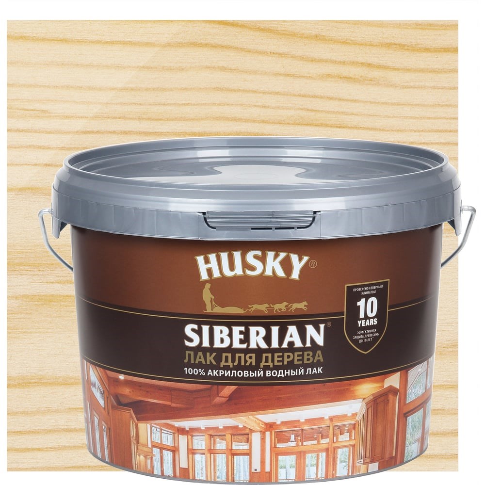 Акриловый лак для дерева HUSKY SIBERIAN 2,5 л 26239 - полуматовый акриловый лак для долговечной защиты (до 10 лет) ранее неокрашенных деревянных потолков, стен, деревянной мебели. Быстро сохнет, не содержит растворителей и практически не пахнет.