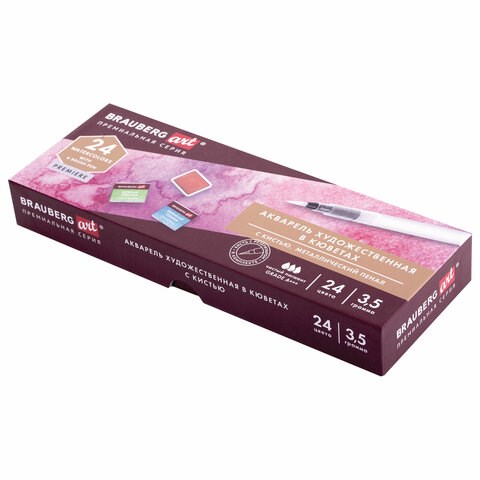 Акварель художественная кюветы НАБОР 24 цвета по 3,5 г, металлический кейс, BRAUBERG ART PREMIERE, 191773