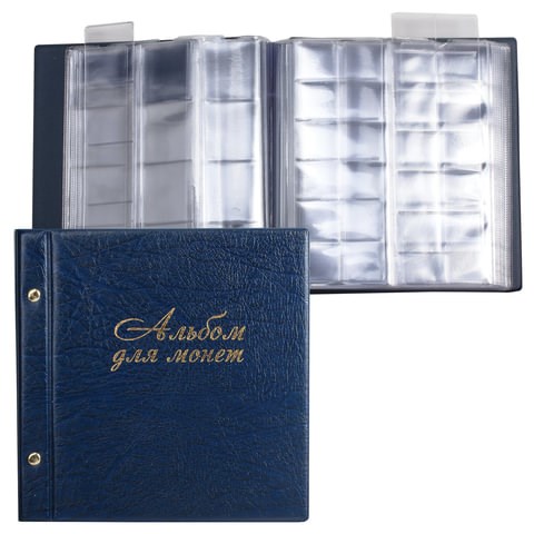 Альбом для монет и купюр на винтах универсальный, 224х224 мм, на 216 монет до D-45 мм, выдвижные карманы, синий, "ДПС", 2855-201