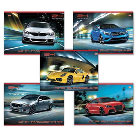 Альбом А4 формата, на скобе. Внутренний блок - 24 листа, офсетная бумага 100 г/м2. Обложка изготовлена из плотной офсетной бумаги 120 г/м2. Поставляется в 5 вариантах дизайна без возможности выбора.