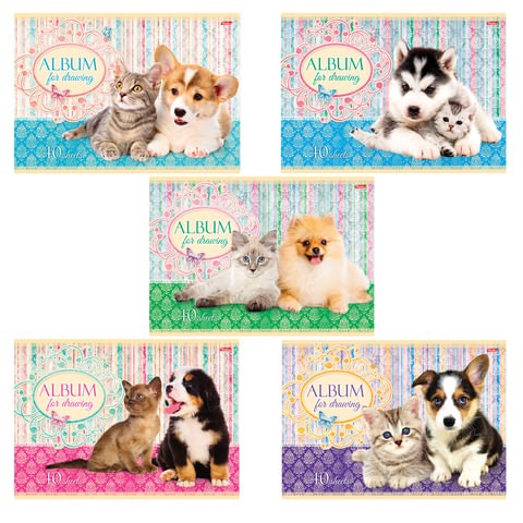 Альбом А4 формата, на скобе. Внутренний блок - 40 листов, офсетная бумага 100 г/м2. Обложка изготовлена из высококачественного мелованного картона. Поставляется в 5 вариантах дизайна без возможности выбора.