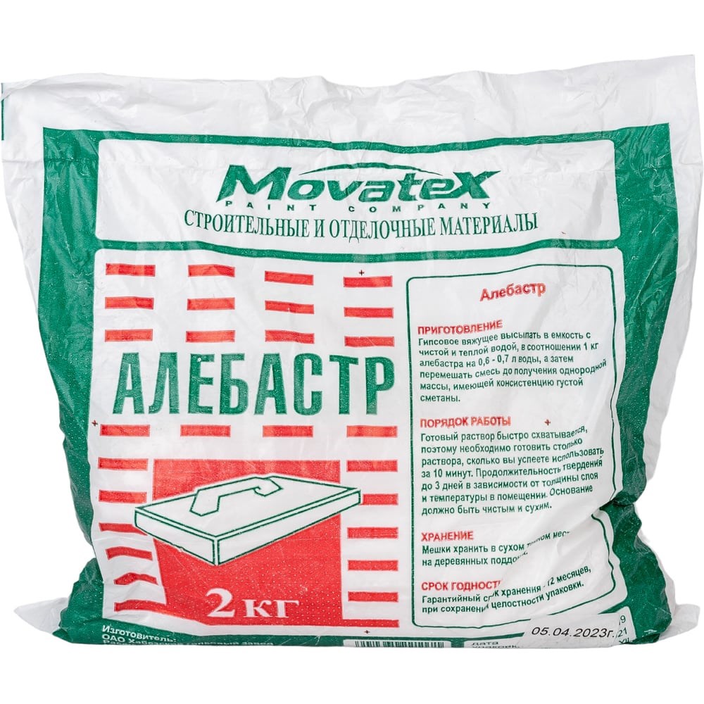 Алебастр 2 кг Movatex Т02360 используется в бытовых и строительных целях. Предназначен для заделки швов, углублений, трещин. А так же применяется для производства гипсовых изделий (гипсокартонных листов, лепнины, сухой штукатурки). С помощью гипса можно без проблем устранить любые неровности потолков и стен. Способствует отличной звукоизоляции помещения. Дополнительные характеристики: Min толщина слоя: 5 мм Max толщина слоя: 15 мм Жизнеспособность раствора: 10 мин. Время высыхания: 6-12 часов Min температура использования: +5 °С Max температура использования: +25 °С