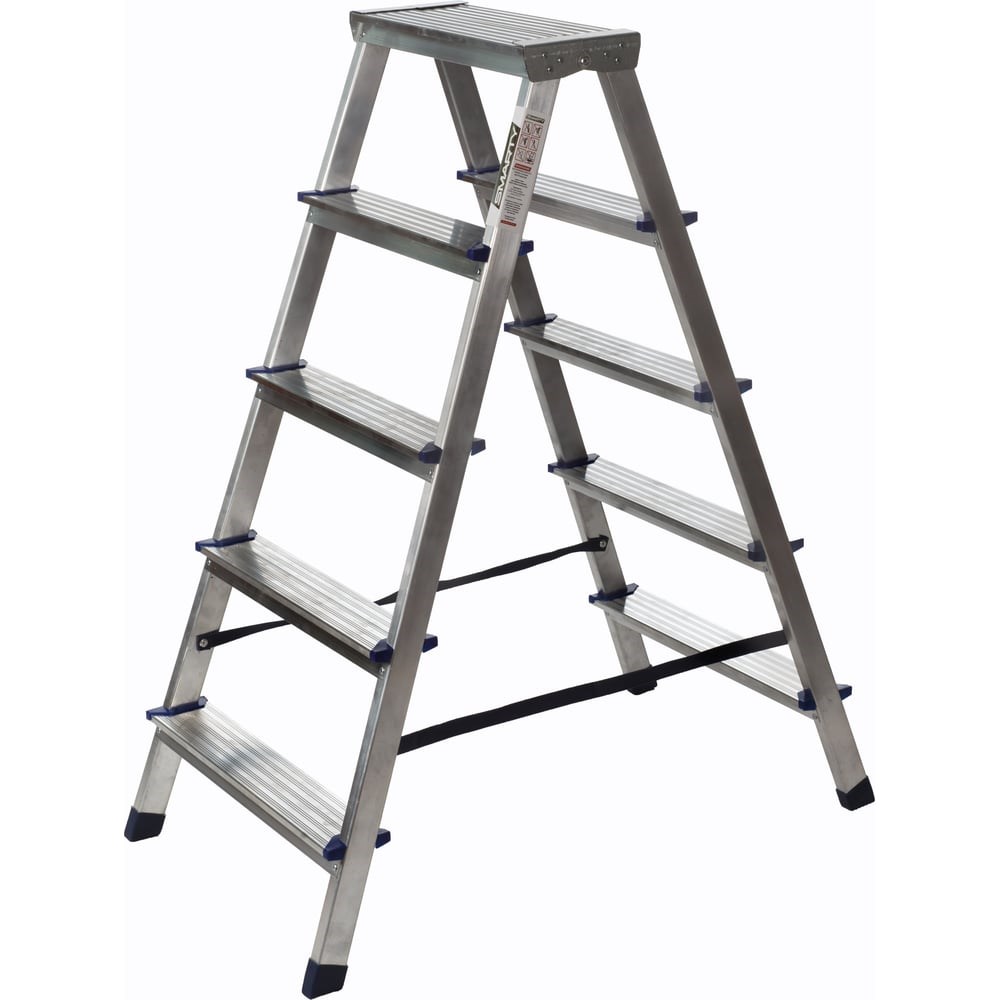 Алюминиевая двухсторонняя стремянка SMARTY Alpha Duo 5 ступени SN026-05 увеличивает рабочую зону без необходимости перестановки стремянки. Это идеальный вариант для отделочных работ. Она подходит для одновременной работы двух человек на небольшой высоте.