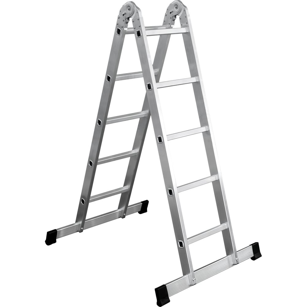 Алюминиевая лестница-трансформер UFUK PRO 2х5 Transformer 511205 предназначена для бытового и профессионального использования.Состоит из двух секций, соединенных между собой шарнирным механизмом. Каждая из секций имеет по 5 ступеней.Конструкция лестницы позволяет использовать ее как приставную лестницу, как стремянку, или подмость.Прочное крепление ступеней к боковинам придает конструкции высокую жесткость. Небольшие габариты облегчают хранение изделия.
