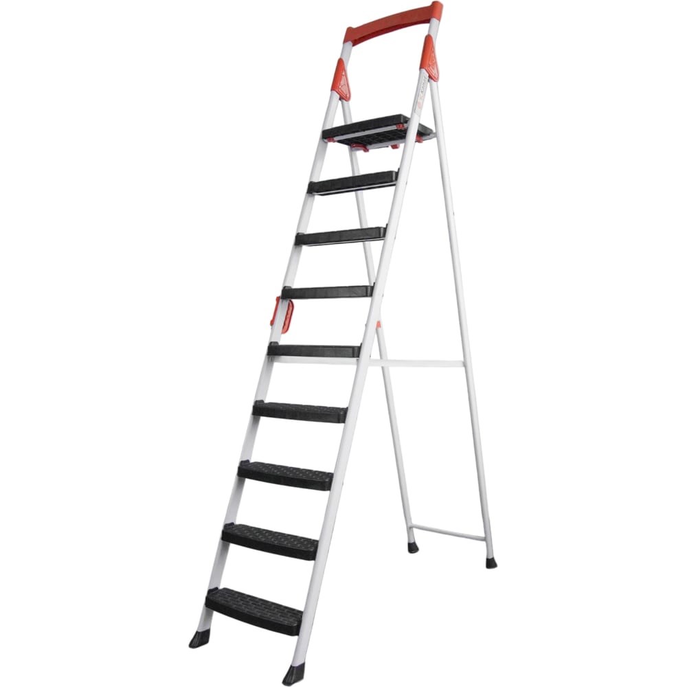 Стремянка с пластиковой ступенью Kanat Promax 9 ступеней (8+1) PPM-708 предназначена для различных работ на высоте. Конструкция из алюминия и пластика отличается высокой прочностью и устойчивостью к воздействию коррозии. Опорные наконечники из пластика защищают стремянку от скольжения и обеспечивают надежное сцепление с поверхностью. Компактное хранение. Складная конструкция не займет много места при хранении или транспортировке. Внимание! Количество ступеней отличается от представленного на фото.