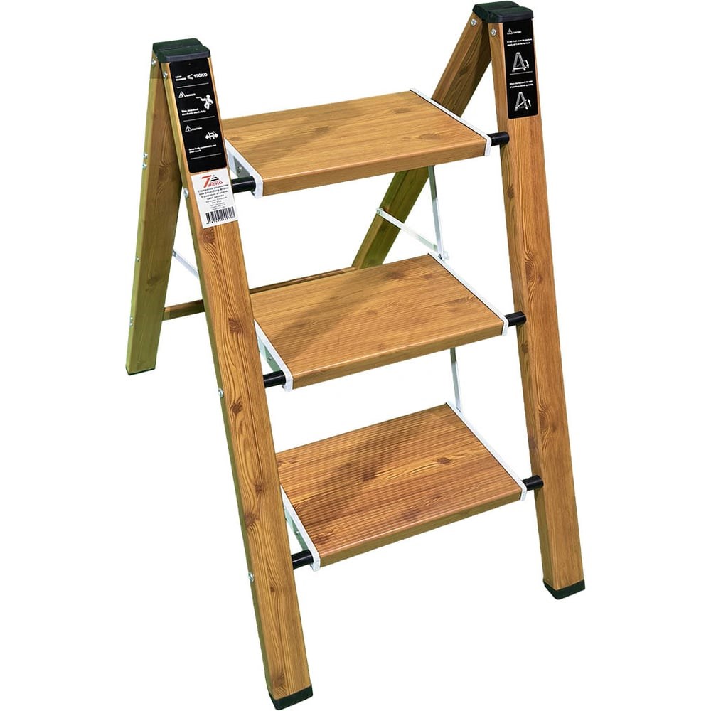 Алюминиевая стремянка SevenBerg Milano 3 с широкими ступенями — идеальный выбор для домашних и профессиональных нужд. Изготовленная из прочного алюминиевого сплава, она обеспечивает надежность и удобство в использовании. Эта модель в цвете «Дерево» сочетает в себе современный стиль и функциональность, что позволяет ей органично вписаться в любой интерьер, будь то классический или современный.Технические характеристики:Материал: алюминийЦвет: ДеревоКоличество ступеней: 3Размеры ступеней: 30 х 18 смВысота шага: 24 смМаксимальная нагрузка: 150 кгГабариты в сложенном виде: 88 см (длина) x 45 см (ширина) x 5 см (толщина)Толщина профиля боковин: 1 ммШирина боковин: 50 мм x 25 ммТип конструкции: односторонняя стремянкаОсобенности: рифленая поверхность ступеней для предотвращения скольжения, противоскользящие наконечники для безопасного использованияСтремянка легко складывается и занимает минимум места при хранении, что делает её удобной для использования в небольших помещениях. Высокая устойчивость и лёгкость конструкции позволяют использовать её как в быту, так и при выполнении различных ремонтных работ.