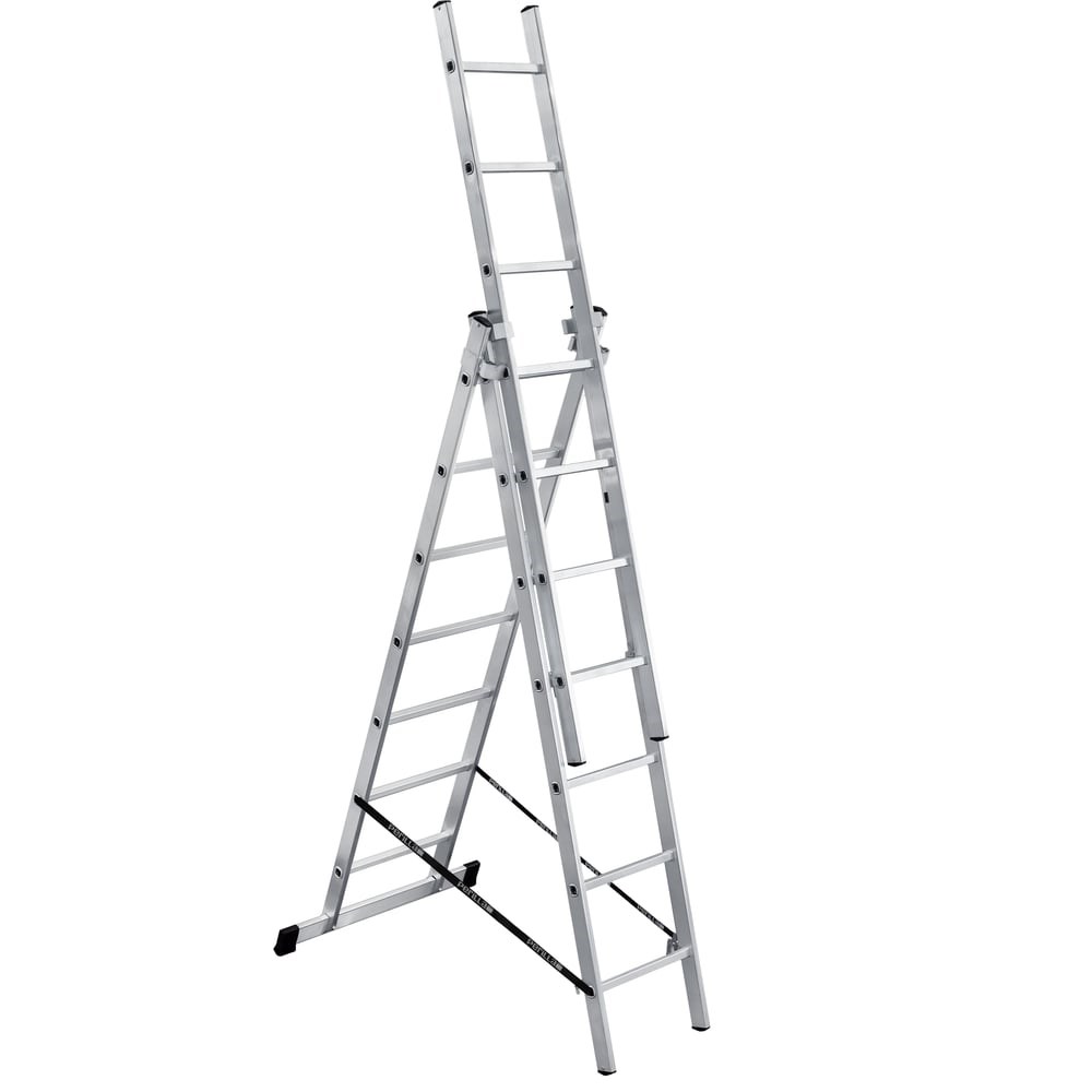 Алюминиевая трехсекционная лестница Perilla Ufuk Pro 3х7 ступеней 411307 производится в России.Модель универсальна: может использоваться как приставная выдвижная лестница, как двухсторонняя стремянка или как стремянка с выдвижной секцией.Надежность. Изготовлена из алюминиевого сплава, обладающего высокой прочностью и достаточной легкостью.Размеры сечения конструктивных элементов специально подобраны таким образом, чтобы свободно выдерживать рабочие нагрузки.Алюминиевый профиль тетив и ступеней лестницы имеет скругленные углы для удобного обхвата руками.Для предотвращения скольжения при работе лестница комплектуется противоскользящими накладками, а для большей устойчивости – нижней поперечной траверсой и поперечной растяжкой из высокопрочной ленты.