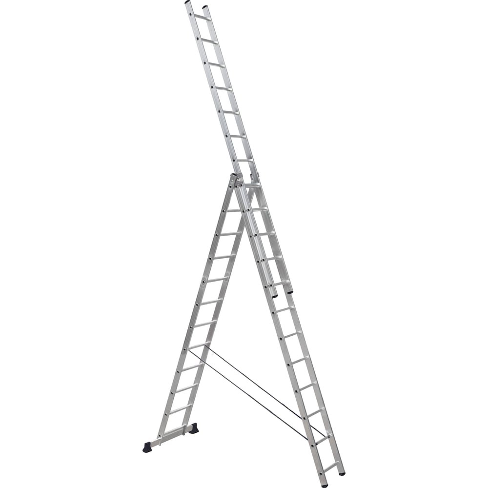 Алюминиевая трехсекционная лестница Scala 3х12 Sc 3012 подходит для выполнения различных работ на высоте.Применяется в качестве приставной лестницы, стремянки, стремянки с выносной консолью, что обеспечивает многофункциональность изделия.Поперечная траверса и противоскользящие наконечники надежно фиксируют лестницу на поверхности.