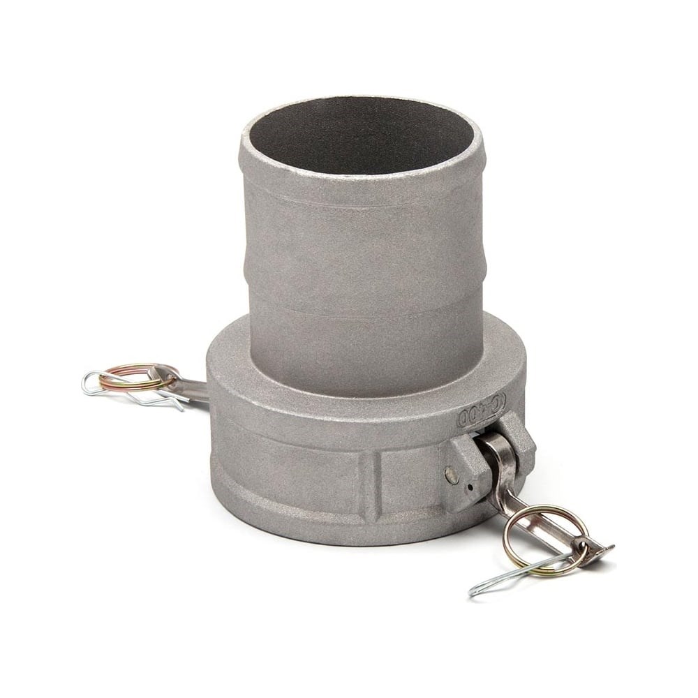 Камлок - это система быстроразъёмных соединений (БРС) кулачкового типа, позволяющая быстро соединить несколько рукавов между собой, присоединить шланг к различным устройствам и резервуарам, заглушить концы шлангов и адаптеров специальными грязепылезащитными колпаками и т.п. Соединение представляет собой универсальную систему, комплект которой состоит из двух частей, т.е. работает только друг с другом (есть "мама" и папа"). "Мама" (приёмная часть) принимает в себя ответную часть "папу" и специальные лапки фиксируют это соединение. Система устойчива к вибрациям. С: тип камлока - муфта со штуцером типа "ёлочка" и приёмной частью "мама" с фиксаторами кулачкового типа 400: условное обозначение диаметра камлока 4": внутренний диаметр трубы (условный проход трубы). Соответствует 100 мм Материал уплотнения для стороны с приёмной частью "мама": кольцо прямоугольного сечения из маслобензостойкой резины Материал корпуса: горячештампованный лёгкий алюминиевый сплав Материал кулачков: нержавеющая сталь или бронза Номинальное рабочее давление: 7 бар Рабочая температура камлока: от -65°C до +93°C