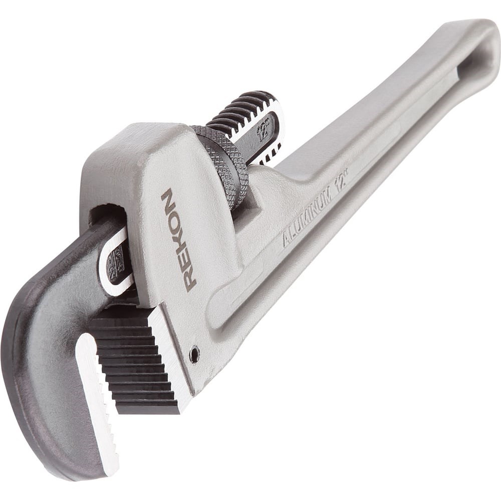 Алюминиевый прямой трубный ключ 12 дюймов REKON 035012 используется для эффективной работы с муфтами и иными соединениями. Изделие необходимо при проведении сантехнических работ различной сложности. Благодаря рукоятке из алюминия вес уменьшается на 40% по сравнению с чугунными ключами. Наличие двух точек захвата обеспечивает надежное удержание.