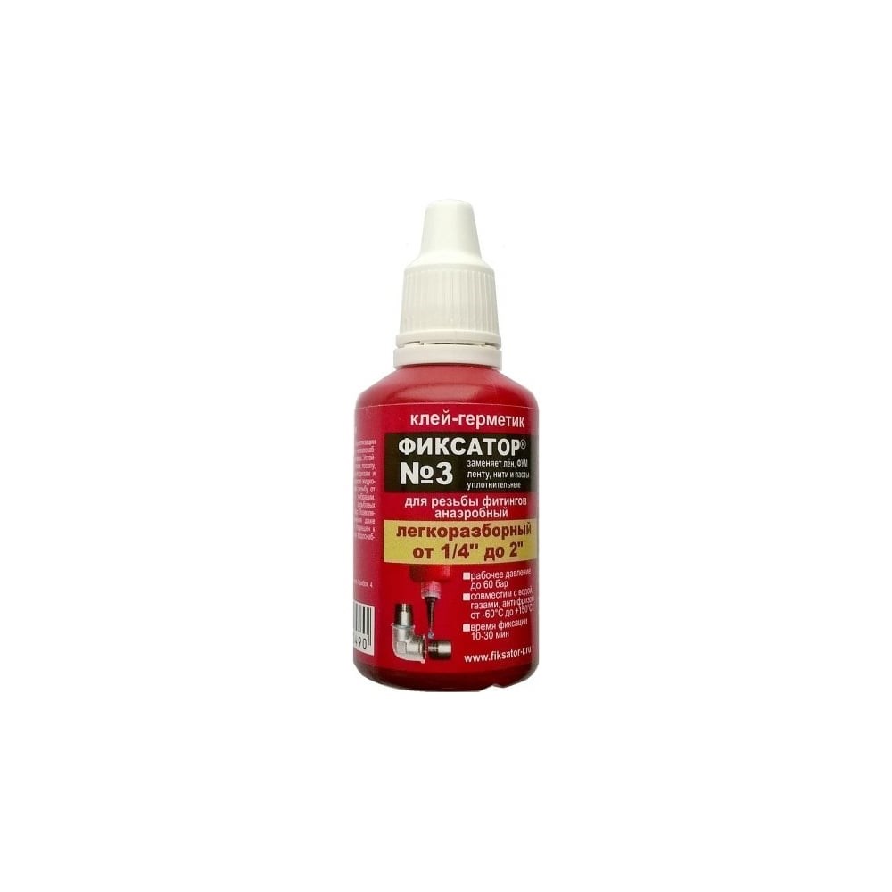Анаэробный клей-герметик Фиксатор №3 20 мл 5258091308002 предназначен для надежной фиксации крепежной метрической резьбы, фитингов от 1/4" до 2" и резьбовых соединений, испытывающих умеренные вибрационные нагрузки. Состав низкой прочности не содержит летучих растворителей. Продукт широко используют в системах горячего и холодного водоснабжения, отопления, подачи газа и сжатого воздуха, гидравлических жидкостей и нефтепродуктов. При герметизации резьбы предварительно рекомендуется использовать жирорастворимый очиститель "Трибопласт 70". При монтаже в условиях низких температур (до -10°С) клей-герметик необходимо применять в комплексе с активатором Фиксатор 100.