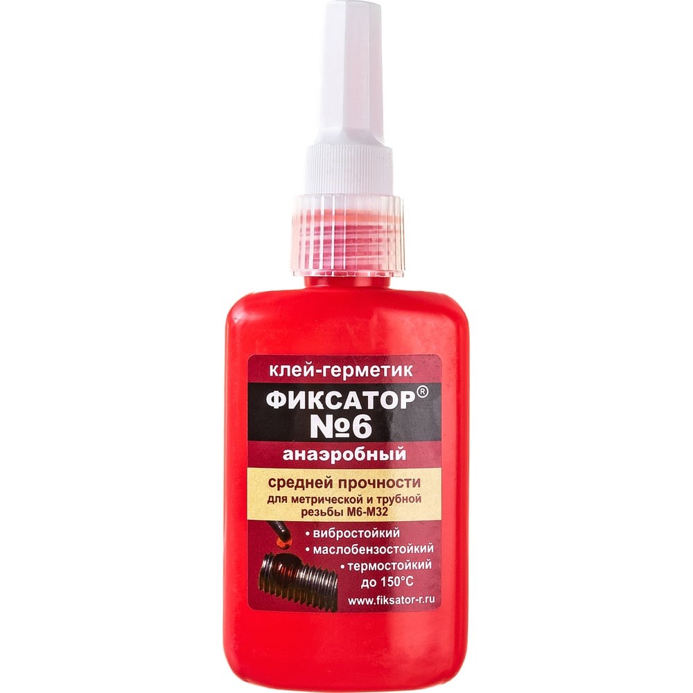Анаэробный клей-герметик Фиксатор №6 80 г 5258091308006 предназначен для надежной фиксации метрической и трубной резьбы, испытывающей высокие вибрационные нагрузки и коррозионное воздействие внешней среды. Состав средней прочности отверждается с образованием термореактивного полимера. Продукт после высыхания обладает хорошей устойчивостью к воде, бензину, техническим маслам, антифризу, слабым кислотам и щелочам.