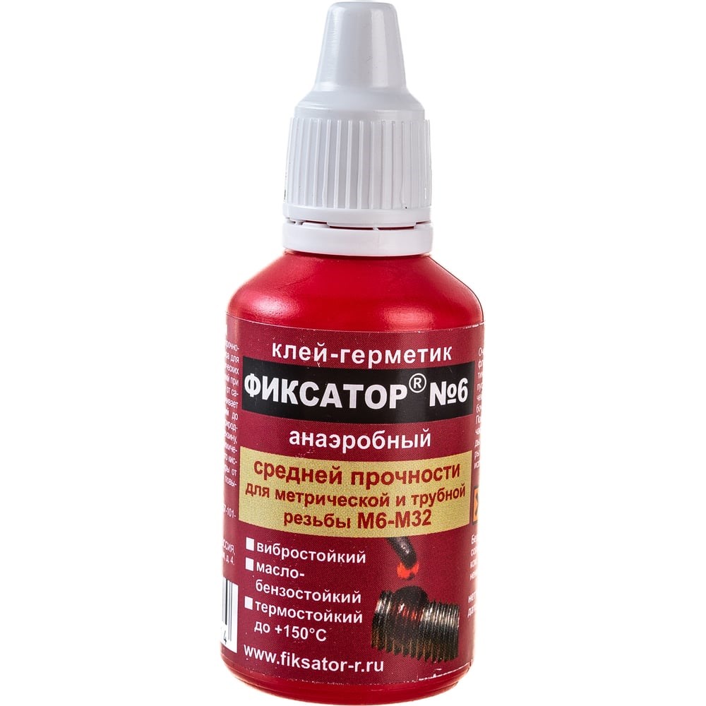 Анаэробный клей-герметик Фиксатор №6 20 мл 5258091308005 предназначен для надежной фиксации метрической и трубной резьбы, испытывающей умеренные вибрационные нагрузки и коррозионное воздействие внешней среды. Состав средней прочности отверждается с образованием термореактивного полимера. Продукт после высыхания обладает высокой устойчивостью к воде, бензину, техническим маслам, антифризу, слабым кислотам и щелочам.