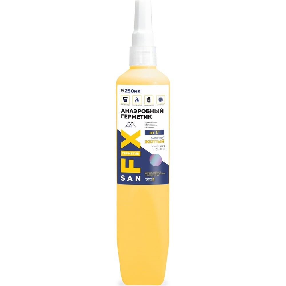 Анаэробный герметик SANFIX предназначен для герметизации металлических резьбовых соединений, в том числе для заполнения имеющихся микронеровностей на поверхности резьбы. После нанесения механическое воздействие распределяется равномерно по всему узлу. Состав обеспечивает герметичность соединения в трубопроводах с водой, газом, маслами и нефтепродуктами. Резьбовое соединение получает дополнительную защиту от коррозии. Анаэробный герметик (жёлтый) рекомендуется для труб от 1". Анаэробный герметик заменяет собой льняные волокна и ФУМ ленты, применяется для установки и фиксации металлических соединений с резьбовым профилем (не подходит для цинковых, алюминиевый, кадмиевых, серебряных узлов). Состав повышает стойкость к вибрациям, позволяет выдерживать повышенное давление. Анаэробный герметик SANFIX рекомендован для использования в системах водопровода, в том числе с питьевой водой, теплосетях, газопроводах. Материал применяется в производстве насосного оборудования, используется для герметизации сварных швов и стопорения резьбы. После отвердевания герметик становится устойчивым к воздействию химикатов, что делает его востребованным материалом для герметизации узлов в агрессивных средах. Демонтаж выполняется механическим способом, без нагрева.