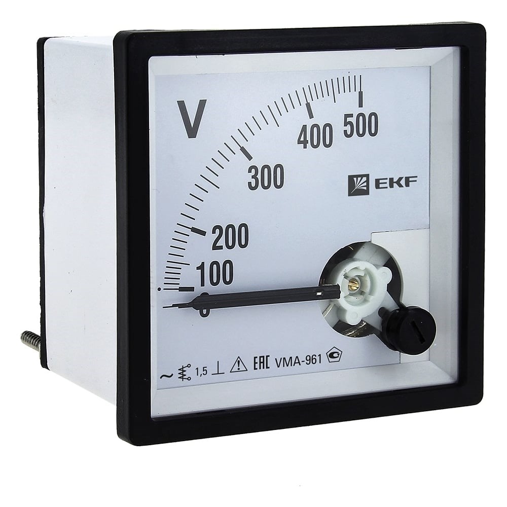 Аналоговый вольтметр EKF VMA-961, на панель 96х96, квадратный, 500 В, прямое подключение, PROxima SQ vma-961-500 применяется для измерения напряжения в электрических цепях переменного тока. Используется для работы в закрытых помещениях, в электрощитовом оборудовании, в электроустановках промышленных предприятий, жилых, общественных зданий и сооружений. Корпус выполнен из не поддерживающей горения пластмассы, что обеспечивает безопасную эксплуатацию. Для удобства вольтметр оснащен настройкой нулевого положения стрелки. Класс точности аналогового вольтметра составляет 1.5. Прибор достаточно легко монтируется на панель щита.