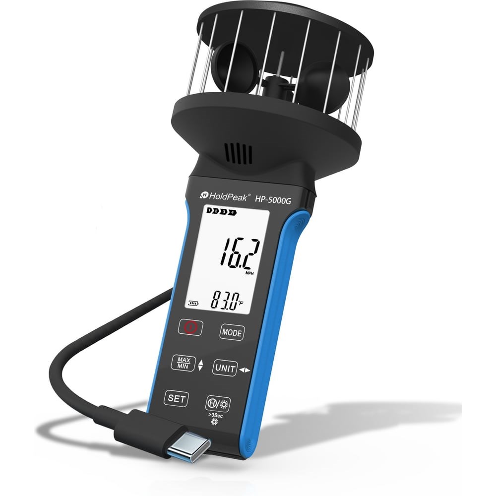 Анемометр HoldPeak HP-5000G — это профессиональный инструмент для измерения скорости и температуры воздуха. Благодаря своей портативности и компактным размерам, он идеально подходит для использования в различных условиях. Точность измерения ±5% и широкий диапазон измерения температуры воздуха от -10℃ до 45℃, а также скорости воздуха от 0.3 до 40 м/с, делают его универсальным и надежным инструментом. Кроме того, наличие крыльчатого зонда и возможности измерения в различных единицах (м/с, км/ч, фут/мин, кНеттс и миль/ч) расширяют его функциональность. Элементы питания в виде Li-lon аккумулятора обеспечивают непрерывную работу устройства в течение 6 часов, а рабочая температура от -10 до 45 °С позволяет использовать его в различных климатических условиях.