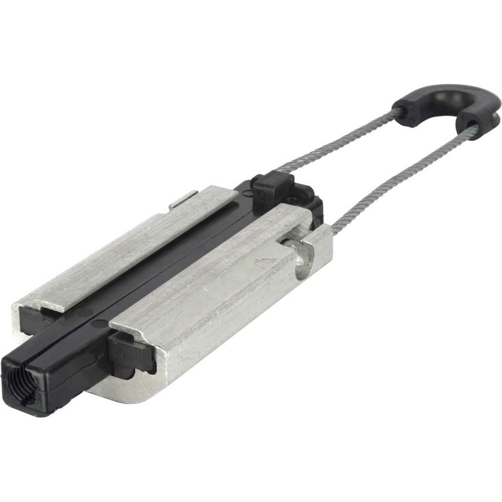 Анкерный зажим NIKOMAX для самонесущего кабеля, диаметр 10 - 14 мм, 15 кН NMF-AL-TCA-L-15 предназначен для крепления и удержания в натянутом состоянии самонесущего оптического кабеля на опорах воздушных линий электропередачи, связи, городского электрохозяйства (уличного освещения, наземного электротранспорта), элементах зданий и сооружений при длине пролетов до 100 метров. Зажим состоит из прочного корпуса, сделанного из высокопрочного полимера и сплава алюминия, невыпадающих клиньев и стальной петли. Петля может разниматься для удобства зацепа. Петля снабжена коушем с пластиковой прокладкой для защиты троса и равномерного распределения нагрузки. Зажим предназначен для крепления кабеля или стального нержавеющего троса диаметром от 10 до 14 мм.
