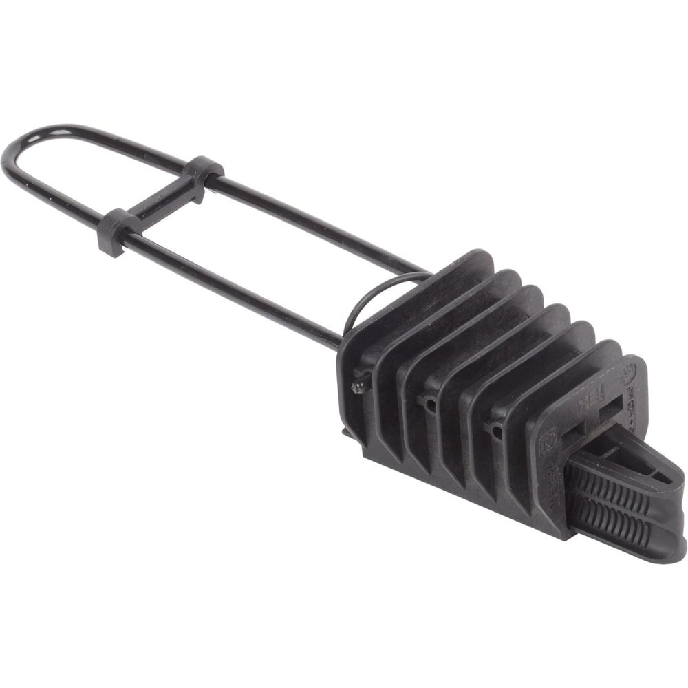 Зажимы анкерные ЗАБ предназначены для анкерных креплений двух или четырех самонесущих изолированных проводов абонентов. Особый рельеф поверхности клиньев обеспечивает надежную фиксацию проводника, препятствуя его выскальзыванию, не повреждая при этом изоляцию провода. Все детали выполнены из полимеров, устойчивых к ультрафиолетовому излучению и погодно-климатическим условиям. Зажим ЗАБ 16-25 не требует инструмента для монтажа, а легко снимаемая дужка зажима позволяет крепить его к кронштейнам и крюкам. Длина дужки варьируется от 90 до 150 мм, она также снабжена дополнительным фиксатором, не позволяющим ей выскочить из клинового нажима, например, во время повышенных ветровых нагрузок.