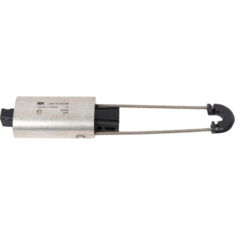 Анкерный зажим IEK ЗАН 70-95/2200 PA 95-2000 ИЭК UZA-14-D95-2000 имеет специальную форму, которая обеспечивает простоту и надежность фиксации проводов абонента. Изделие выполнено из металла и полимеров, устойчивых к ультрафиолетовому излучению.
