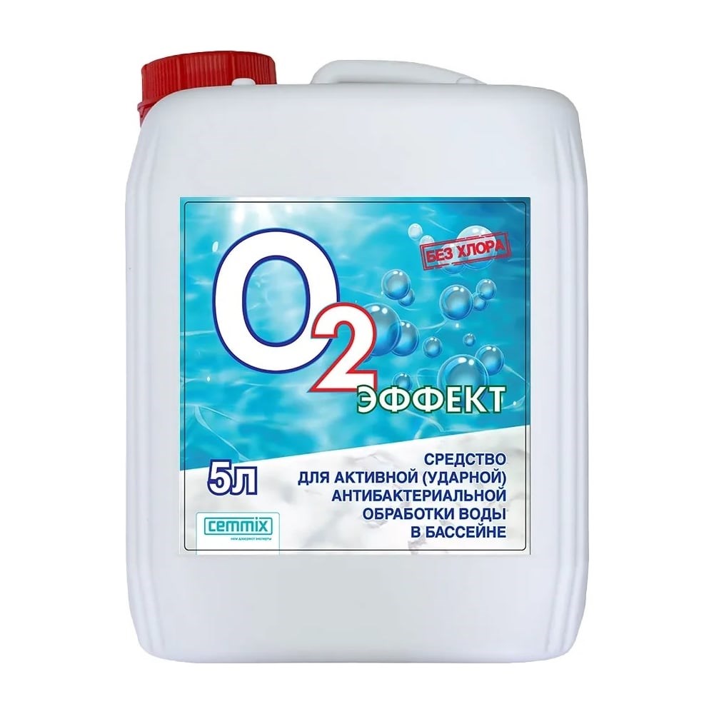Антибактериальное средство CEMMIX О2 Эффект 5 л 82578092 используется для уничтожения широкого спектра бактерий, вирусов, инфекций, грибор и спор. Средство не оставляет следов после высыхания, поэтому отличается практичностью. Не содержит агрессивных веществ, за счет чего экологично и безопасно для человека. Обладает хорошим моющим действием, при этом не вызывает коррозии. Расход средства: Стартовая обработка: рН<7.0 – 500 мл/м³; рН=7.0-8.0 – 800 мл/м³; 8.0>рН – 1200 мл/м³ Текущая обработка: рН<7.0 – 150 мл/м³; рН=7.0-8.0 – 200 мл/м³; 8.0>рН – 300 мл/м³ Рекомендации по применению: Для стартового использования бассейна рекомендуется провести активную (ударную) обработку исходя из 800 мл средства О2 ЭФФЕКТ в расчёте на один 1 м³ воды при постоянной работе системы фильтрации. После проведения активной обработки исключить купание в течение суток. Для текущей обработки используйте средство О2 ЭФФЕКТ из расчёта 200 мл на 1 м³ воды один раз в 7-10 дней. После проведения текущей обработки исключить купание в течение 12 часов. Для наиболее эффективной работы рекомендуем перед применением измерить уровень pH в воде бассейна. Оптимальный показатель составляет 7,0-7,4. При необходимости увеличьте или уменьшите уровень pH в воде с помощью препаратов pH-плюс или pH-минус. Настоятельно рекомендуем применение препарата в бассейнах, оснащённых системой фильтрации и циркуляции воды.