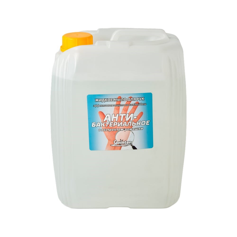 Мыло жидкое спринтер антибактериальное 5,0л. (евро канистра) ООО "БАЗОВАЯ ДЕЗИНФЕКЦИЯ" М624 эффективно борется с бактериями, запахами и следами различных загрязнений, не пересушивая кожу рук. Формула обогащенная глицерином обеспечивает необходимое увлажнение. Антисептические свойства триклозана длительное время препятствуют размножению микробов, экстракт ромашки успокаивает кожу. Обладает антимикробной активностью в отношении грамотрицательных и грамположительных бактерий (кроме микобактерий туберкулеза) и грибов рода Кандида.