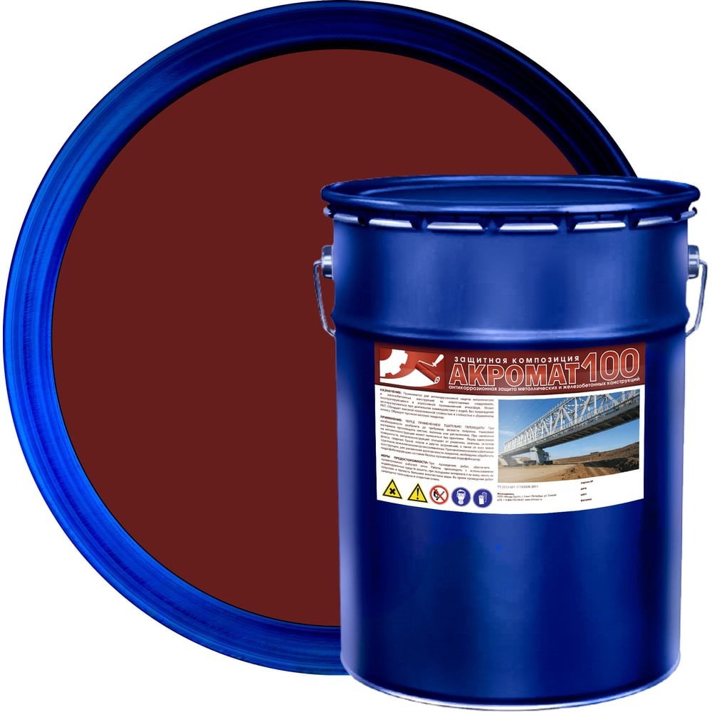 Антикоррозийная грунт-эмаль Акромат 100, 25 кг, кр.-коричневый 1562 предназначена для окрашивания конструкций из металла, дерева и железобетона (фасады зданий, заборы, ограждения, сварные швы, высоковольтные ЛЭП, топливные трубопроводы, дымоходы). Продукт подходит для обработки промышленных бетонных полов, эксплуатирующихся в экстремальных условиях. Благодаря специальным добавкам, состав наносят на поверхность (по ржавчине) без предварительного грунтования. Самоочищающееся покрытие не накапливает пыль и загрязнения. Грунт-эмаль обладает гидро- и электроизоляцией, устойчивостью к износу, коррозии и повышенной температуре.
