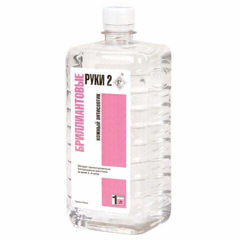 Антисептик для рук и поверхностей спиртосодержащий (69%) 1 л БРИЛЛИАНТОВЫЕ РУКИ-2, дезинфицирующий, жидкость
