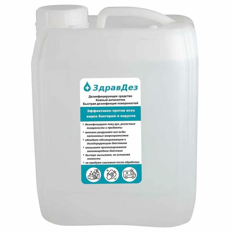 Антисептик для рук и поверхностей спиртовой (68%), 5 л, ЗДРАВДЕЗ, дезинфицирующий, жидкость, ЗДА-566