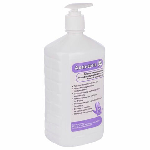 Антисептик для рук/поверхностей (спирт 70%) 1 л, АВАНДЕЗ-А, дезинфицирующий, дозатор
