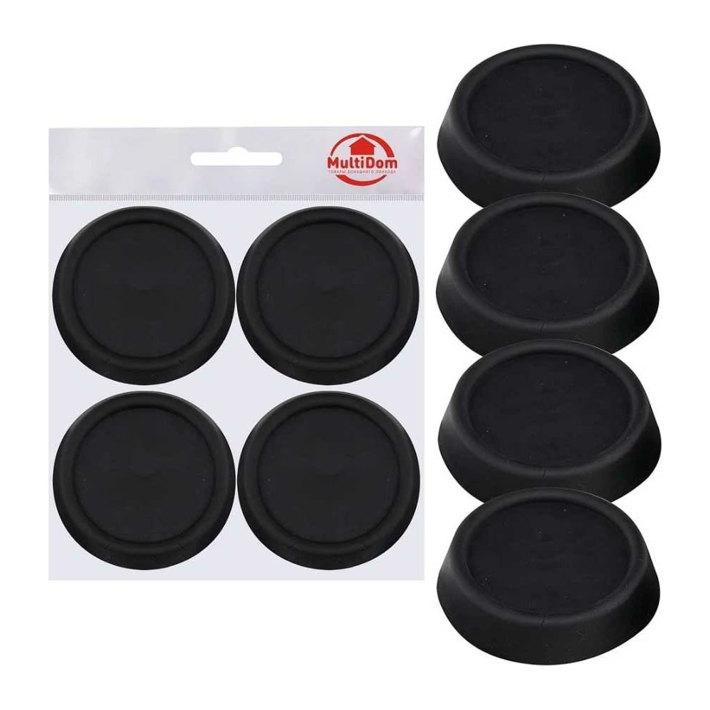 Антивибрационные подставки для стиральных машин и холодильников МУЛЬТИДОМ 4 шт. (круг, черный) D6 см ПТ76-142 позволяют значительно снизить нагрузку ножек техники на напольное покрытие, керамическую плитку, деревянные полы, а также предотвращает скольжение стиральной машины при работе в режиме отжима. Снижение вибрации при работе техники достигается оптимальной формой подставок и использованием высокопрочного материала.